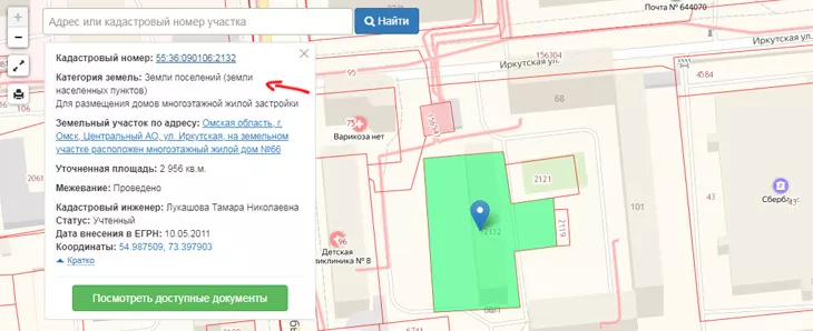 - При осуществлении поиска по кадастровому номеру участка земли потребуется ввести его в поисковой строке. Появится краткая информация о категории земли.