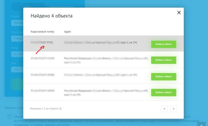 - После нажатия на кнопку «Найти», сервис обращается к базам Росреестра и, при положительном результате поиска, выдает кадастровый номер объекта.